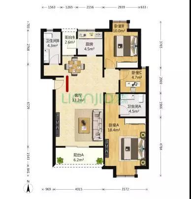 有人問(wèn),什么樣的戶(hù)型適合做這樣的隔斷,我從鏈家找了張戶(hù)型圖,作為參考: