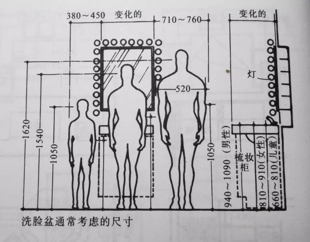 洗漱臺壁燈高度或與視線(xiàn)平行:150-180cm比較合適。