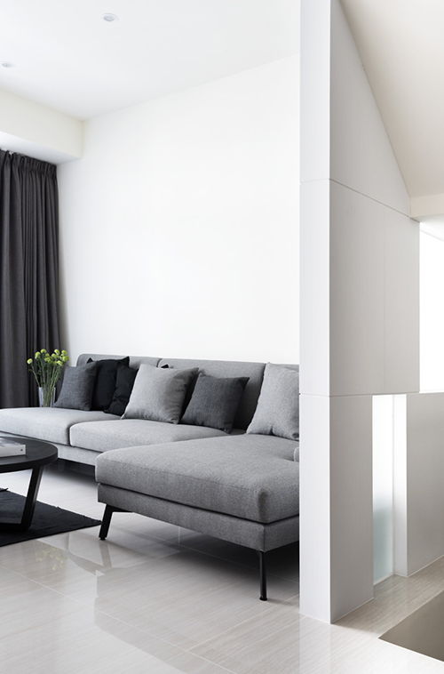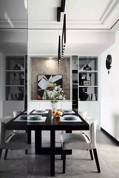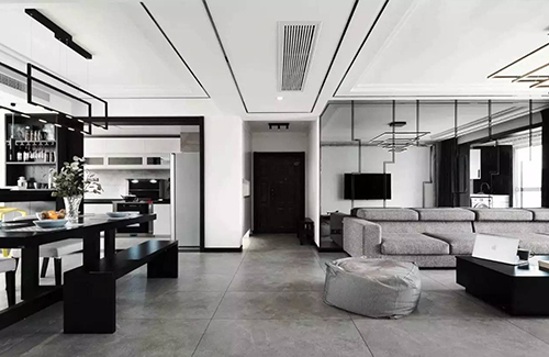 空間開(kāi)敞而靈動(dòng),采用黑白灰色為基調,