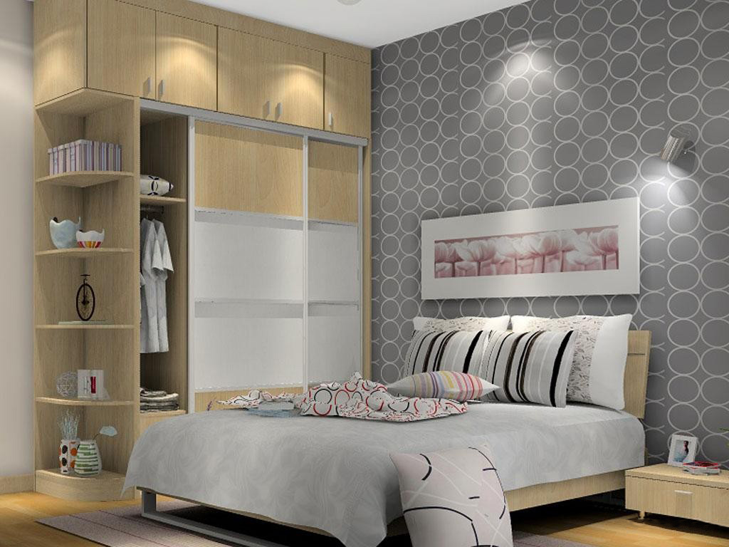 灰色墻面搭配原木色床飾,