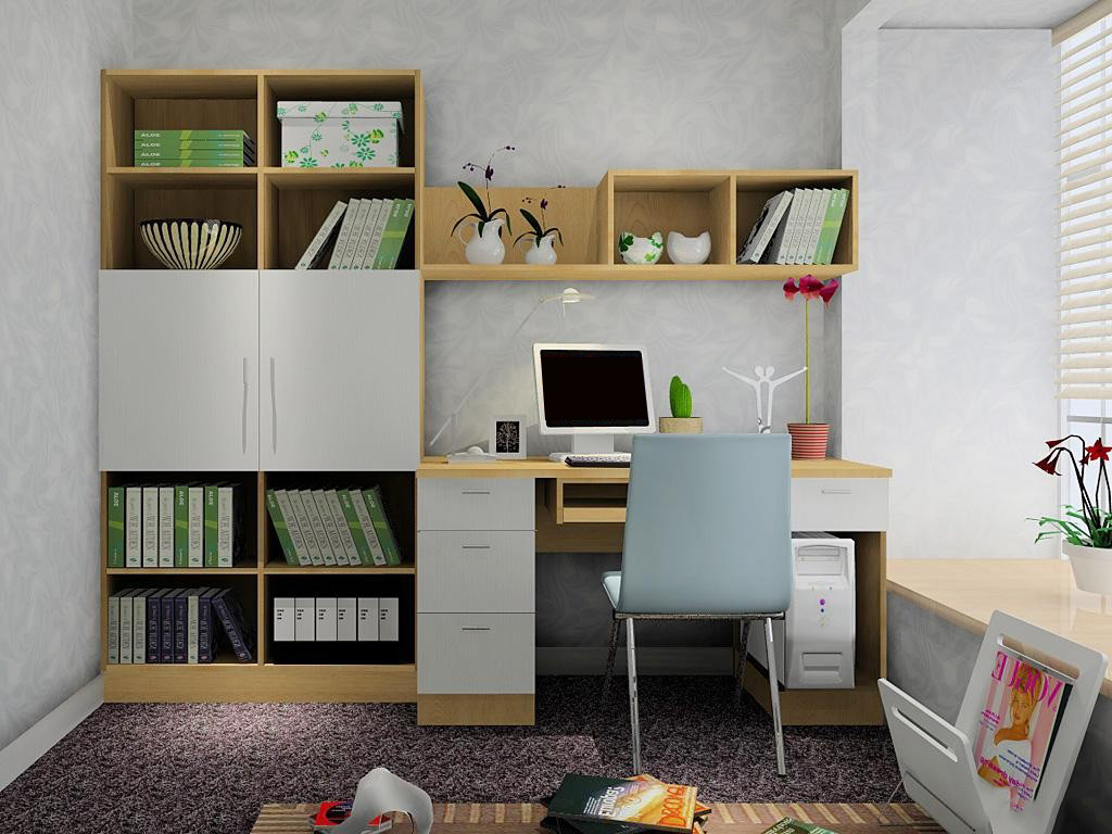 將書(shū)桌和書(shū)柜設計在衣柜中部,