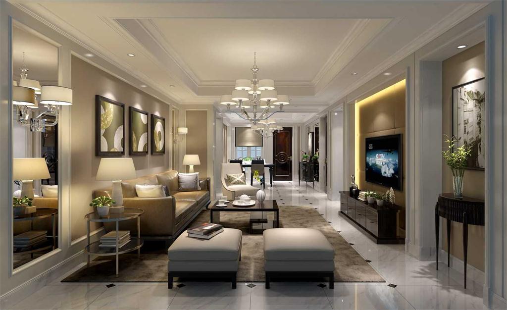 簡(jiǎn)歐別墅客廳電視背景墻效果圖