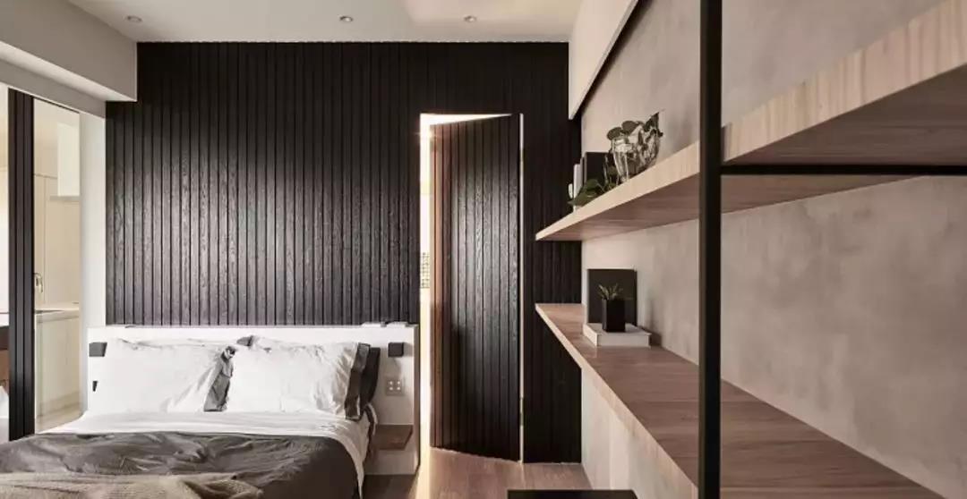 有一種隱形門(mén)藏在在一大排收納架的中間,一來(lái)用作收納使用,二來(lái)收納架上的紋理剛好是把門(mén)巧妙的隱藏了起來(lái)。另一種隱形門(mén)放置在家具收納旁邊,顯得是家具的一部分,將門(mén)打開(kāi),一個(gè)屬于自己的私密空間得以展現。